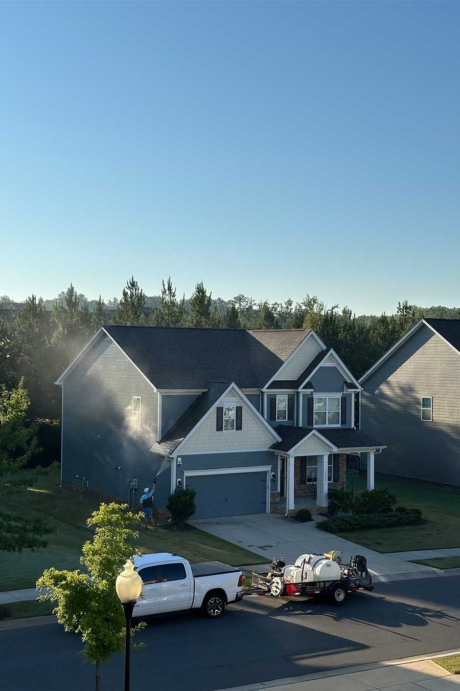 Our exterior house washing service uses a professional soft wash system to safely clean siding, brick, trim, and gutters without high-pressure damage. We remove algae and mildew at the source, leaving homes across South Charlotte looking brighter and refreshed.